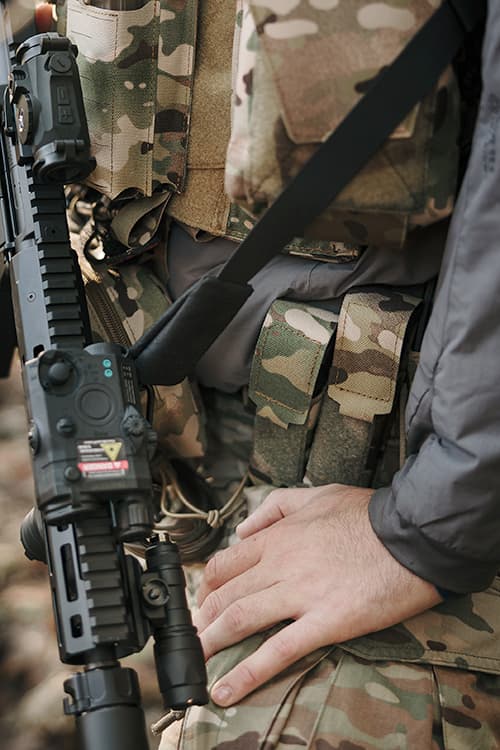 Constructed from 1000D nylon, the panel withstands heavy field use, abrasion, and adverse weather without compromising performance. The Laser-Cut MOLLE system keeps the build lightweight while remaining fully compatible with additional pouches and accessories. Deployment onto any vest or chest rig takes seconds - just clip two buckles and you're ready.